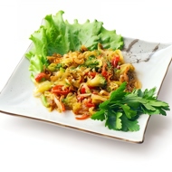 Dice the tomatoes. Combine all the ingredients, mix well, and dress with the sauce.