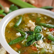 Peel and dice the roots, place them in a pot, lightly sauté in oil, pour in 2 cups of broth, and cook covered on low heat for 5-10 minutes. Then add the sliced pea pods or beans and cook for another 10 minutes. After that, add the chopped sorrel and let it boil for 2-3 minutes.