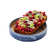 A great way to make sure boiled beets and carrots for New Year's salads don’t go to waste. This bruschetta can also be made from leftover vinaigrette. Or you can even prepare it from scratch, as herring under a fur coat has become quite boring, and in the form of bruschetta, it looks fresher, trendier, and more appetizing. It's important to use high-quality fatty herring and resist the temptation to swap the honey-mustard dressing for regular mayonnaise. Leftover black or Borodinsky bread will also get a second life if you toast it to a golden crust and drizzle it with aromatic oil.