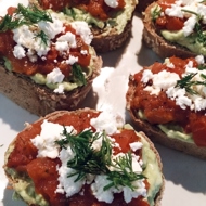 Bruschetta with Avocado Paste, Tomatoes, and Feta Cheese