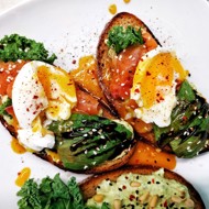 Bruschetta with Avocado, Salmon, and Poached Egg