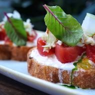 Bruschetta with Crab, Stracciatella Cheese, and Tomatoes