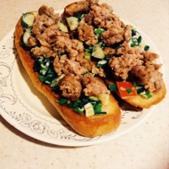 Bruschetta with Ground Meat and Vegetables