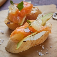 Bruschetta with Lightly Salted Salmon and Philadelphia Cheese