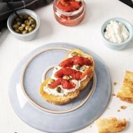 Bruschetta with Ricotta and Feta Cream with Roasted Peppers
