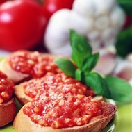 Remove the garlic from the tomato sauce and drizzle 1–2 tablespoons over each piece of bread.