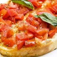 Arrange the tomatoes and basil leaves on the bruschettas, season with salt and pepper, and drizzle with olive oil again.