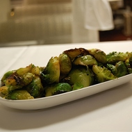 In a skillet, heat the olive oil. Add a pinch of red pepper flakes and the Brussels sprouts, stir, and sauté for 3–5 minutes, stirring, until golden brown (if necessary, add another 0.5 tablespoons of olive oil).