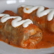 Pour the prepared sauce over the cabbage rolls and simmer on low heat until the cabbage is cooked. Serve with sour cream.