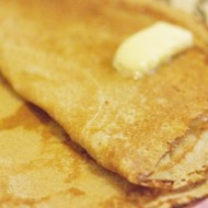Heat a dry frying pan well and grease it with a piece of lard (or vegetable oil). Pour in 2–3 tablespoons of batter, spreading it evenly. Cook on one side until bubbles appear, then the pancake cooks even faster on the other side.