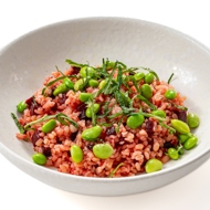 Bulgur with beetroot and edamame