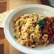 When the bulgur is ready, add finely chopped bell pepper and let it simmer for 10 minutes.