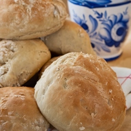 After that, cover the bowl with the dough again and place it in a warm place for a second rise. Once the dough has doubled in size, transfer it to a floured board and divide it into balls weighing about 50–60 g. Place the shaped dough on a baking sheet lightly greased with oil, let the buns rise in a warm place, then brush them with beaten egg and bake in a hot oven for 12–15 minutes.