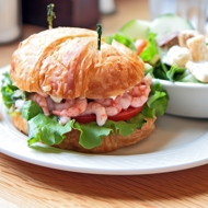 Place thinly sliced tomato and lettuce leaves inside the bun. Then add the shrimp salad and serve immediately.