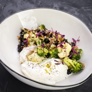 Transfer everything to a bowl and dress it with two dressings. Add fresh herbs and rice popcorn. Mix well. Season with salt and pepper to taste.