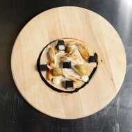 Then add the fish cubes and finish the dish with a cauliflower puree. Paco does this using a piping bag. Serve while it's still warm.