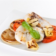 When serving, it is recommended to garnish the dish with sautéed cherry tomatoes, mushrooms, potato puree rosettes, and lightly fried spaghetti.