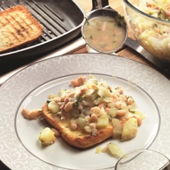 Serve the soup on flat plates, spooning the thick mixture over wheat croutons.