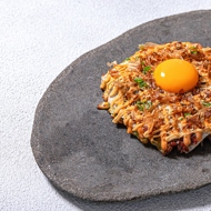 Sprinkle with tuna flakes and finely chopped green onion. Place a yolk in the center.
