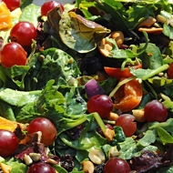 Cut the grapes in half and add them to the cabbage along with the peanuts.
