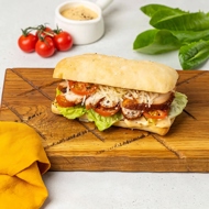 How to turn a salad into a sandwich? It's very simple. Layer all the ingredients of a Caesar salad neatly and press them between halves of ciabatta. This snack can replace a full lunch.