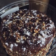 Spread the remaining cream on the top and sides. Decorate with nuts, chocolate crumbs, or any other ingredients.