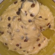 After the dough has risen, melt the butter and add it to the dough, then add the raisins and mix. Leave the dough for about 20 minutes to rise again.