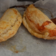Place the filling on one half of the dough circle, and seal the edges like you would for turnovers. Do the same with the remaining calzone bases.