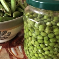 After cooking, drain the peas in a colander, let the water drain, and then place them in clean, sterilized half-liter jars, adding citric acid (½ teaspoon) to each.