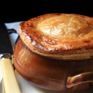 Knead a stiff dough and tightly cover the pot with it. Place the pot in the oven for 30–35 minutes. Before serving, remove the dough and serve the chicken in the pot.