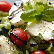 On a plate, arrange the lettuce, slices of mozzarella, tomatoes, and basil leaves. Drizzle with olive oil, and sprinkle with dried oregano, salt, and freshly ground black pepper to taste. Finish with a splash of balsamic glaze. Do not mix.