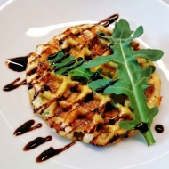 Grease the preheated waffle maker with olive oil. Place the mixture in and bake for a few minutes.