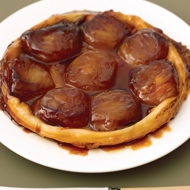 Invert the cooled pie onto a plate so that the caramelized layer is on top. To add caramel, take 100 g of sugar and 50 g of butter. Grease a pan with butter, sprinkle sugar on top, and place the pan in the oven to caramelize the sugar at a low temperature. While still hot, spread the caramel over the surface of the pie.