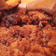 In a bowl, mix the remaining butter, flour, and brown sugar with your hands until the mixture resembles crumbs. Add the walnuts and mix well again.