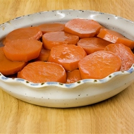 Mix the molasses with lemon juice and heat in a small saucepan. Place the sweet potato slices in a bowl and drizzle with the syrup, mixing well. Serve on plates and sprinkle with sesame seeds.