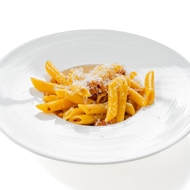 Transfer the cooked pasta to the saucepan with the brisket, mix well, and leave on low heat.