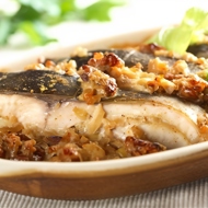 Take a deep baking dish, a Dutch oven works well. Place the carp inside, sprinkle with the sautéed onion and carrot, add the bay leaf and pepper. Pour the sour cream sauce over it.
