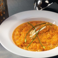 Peel the carrot, cut it into small pieces, and place the pieces into a blender. Add the juice of two lemons, a few medium-sized broccoli florets, garlic, red and green onion, grated ginger, and maple syrup to the blender. Pour in a cup of drinking water and blend the contents in pulse mode until you achieve a pleasant orange puree in color and consistency. Add more liquid if the puree seems too thick. Blend again.