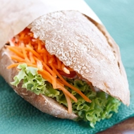 Grate the carrots on a coarse grater and place them on the bottom halves of the rolls. Next, add the cress and cover with the top halves of the rolls.