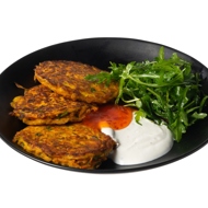 Serve the pancakes with yogurt, arugula salad, drizzled with sweet chili sauce.