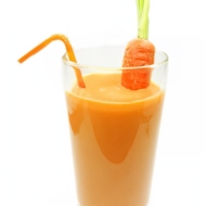 Add carrot juice, yogurt, honey, lime juice, and ice. Blend until smooth.