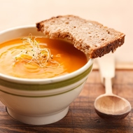 Peel the carrots and cut them into small pieces. Transfer to a saucepan. Cover with water and bring to a boil. Reduce the heat and cook until soft, about 20 minutes. Drain, reserving the carrot water.