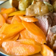 Peel the carrots and cut them into wedges, place them in a pot, add a little broth or water, add ½ tablespoon of butter, salt, and sugar, cover, and simmer for 20-30 minutes.