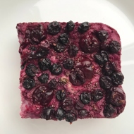 Pour the mixture into a baking dish and sprinkle with frozen berries on top.
