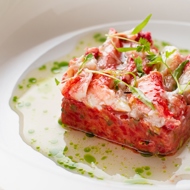 Garnish the dish with micro cress, drizzle with olive oil and tomato water.