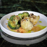Brush the broccoli and cauliflower with miso butter and grill for at least 5 minutes until they reach the desired tenderness (maximum 10 minutes).