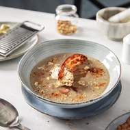 Cauliflower and Mushroom Puree Soup with Gorgonzola Cheese and Bacon