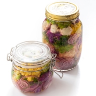 Add the remaining onion, dill umbrellas, and bay leaf, then layer the rest of the cauliflower on top. The jars should be packed tightly.
