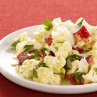 Combine the cauliflower, pepper, and dress the salad. Season with salt and pepper.
