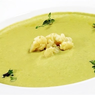 Clean the cauliflower from the leaves, wash it, break it into florets, place it in the strained broth, and cook until soft. Set aside a few florets for garnish.